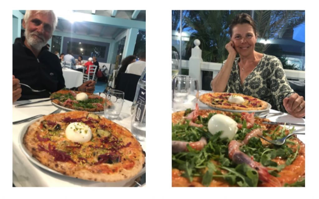N’oublions pas nos ventres bien humains et les pizzas délicieuses de Sardaigne que nous avons dégustées au restaurant du port d’Arbatax !